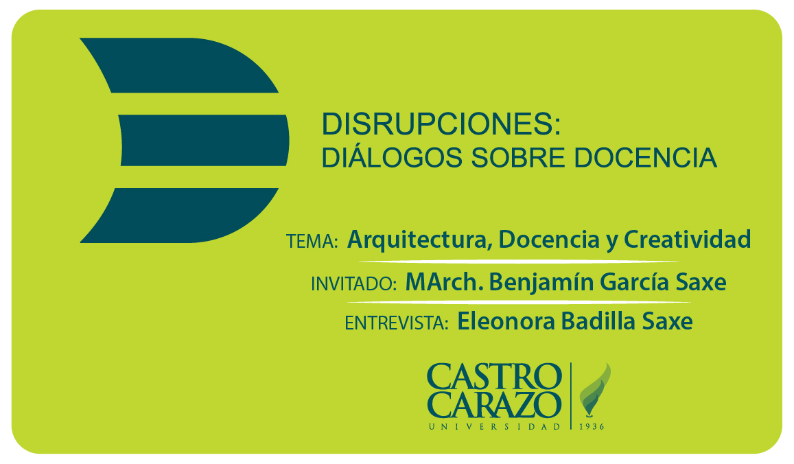 En el vigésimo segundo capítulo de: "Disrupciones: Diálogos sobre Docencia" nos acompaña el MArch. Benjamín García Saxe, quien compartirá su criterio en un diálogo muy interesante sobre “Arquitectura, Docencia y Creatividad”.