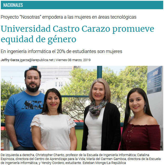 La Universidad Castro Carazo quiere empoderar a las mujeres no solo en el estudio de ingenierías, sino también en que alcancen una situación de igualdad ante los hombres en todas las carreras que cursen, para que posteriormente esto se reproduzca en el mercado laboral.
