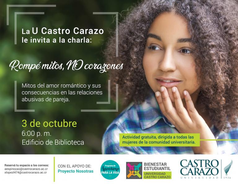 Te invitamos a la charla "Rompé mitos, NO corazones. Mitos del amor romántico y sus consecuencias en las relaciones abusivas de pareja"