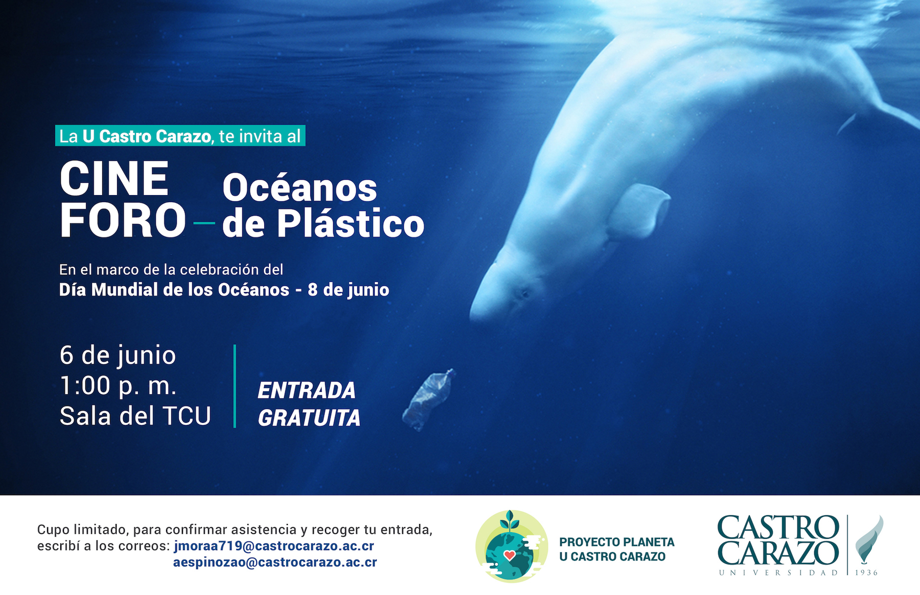 En el marco de la celebración del Día Mundial de los Océanos, próximo 8 de junio, la U Castro Carazo te invita al CINE FORO: "Océanos de Plástico"