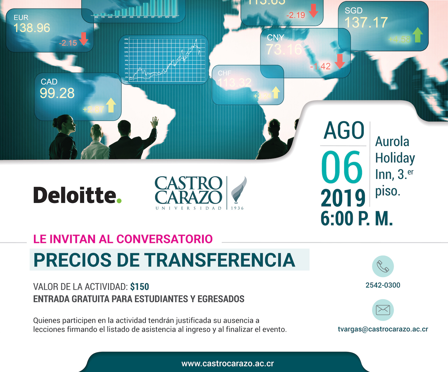 Deloitte Costa Rica y la Universidad Castro Carazo te invitan este próximo 6 de agosto al conversatorio: "Precios de Transferencia".