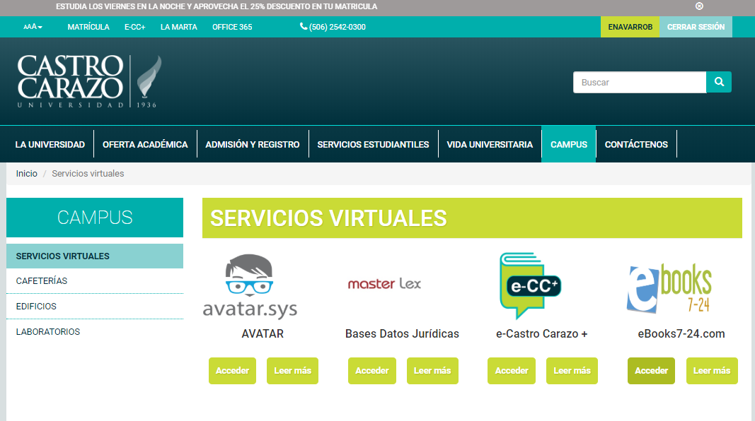- En la pestaña de Campus dar clic sobre "Servicios Virtuales"