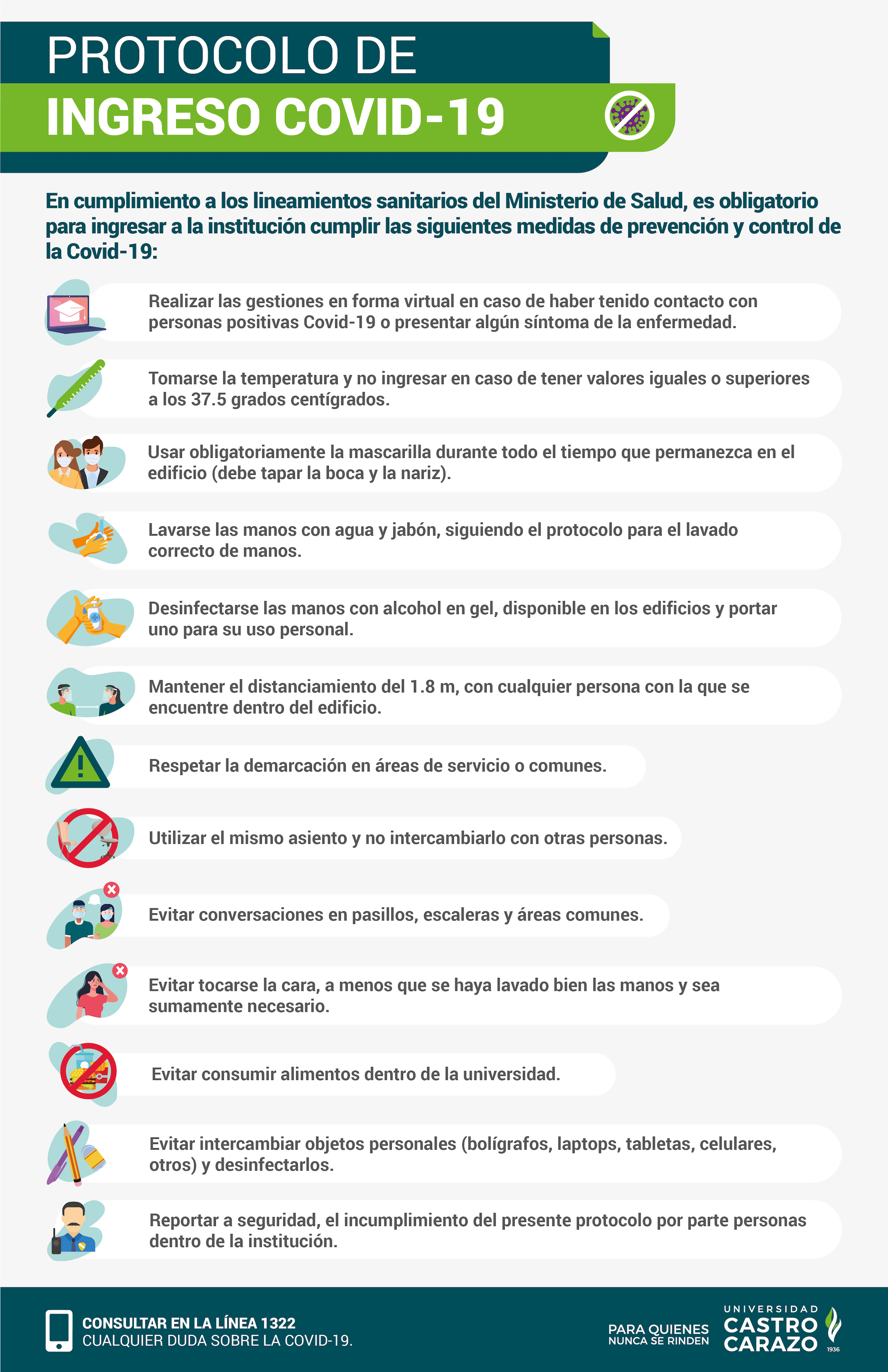 Les recordamos nuestro Protocolo de Ingreso a los edificios, Covid-19, el cual es de cumplimento obligatorio de toda la comunidad universitaria y visitantes, con la intención de cuidarnos dentro de las instalaciones.