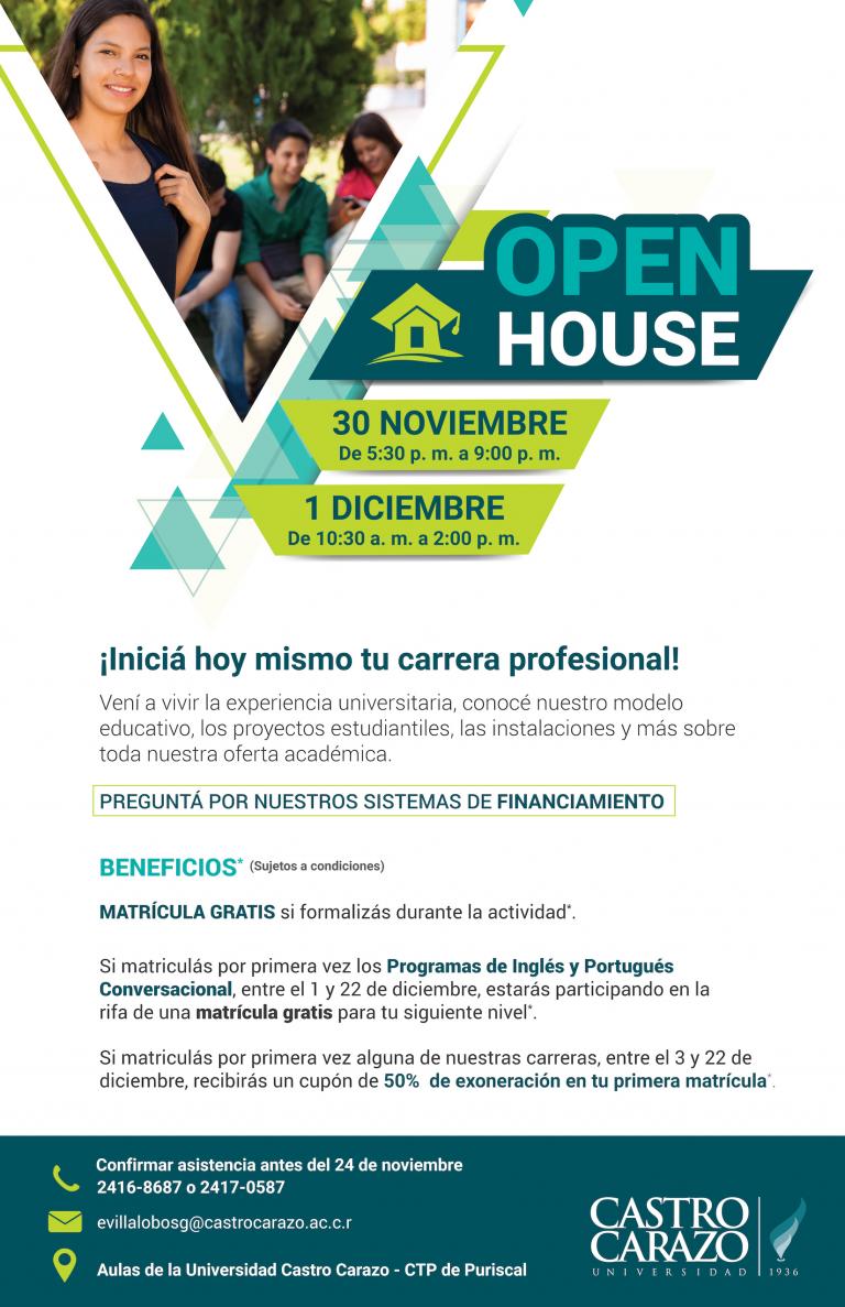 Te invitamos a nuestro OPEN HOUSE sede Puriscal el próximo viernes 30 de noviembre y sábado 1 de diciembre, 2018.