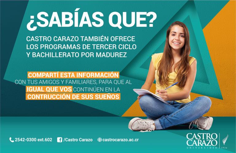 Castro Carazo también ofrece los programas de Tercer Ciclo y Bachillerato por Madurez.