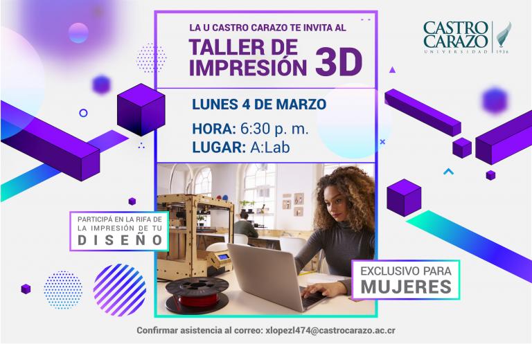 Te invitamos a participar en nuestro Taller de Impresión 3D, exclusivo para mujeres.