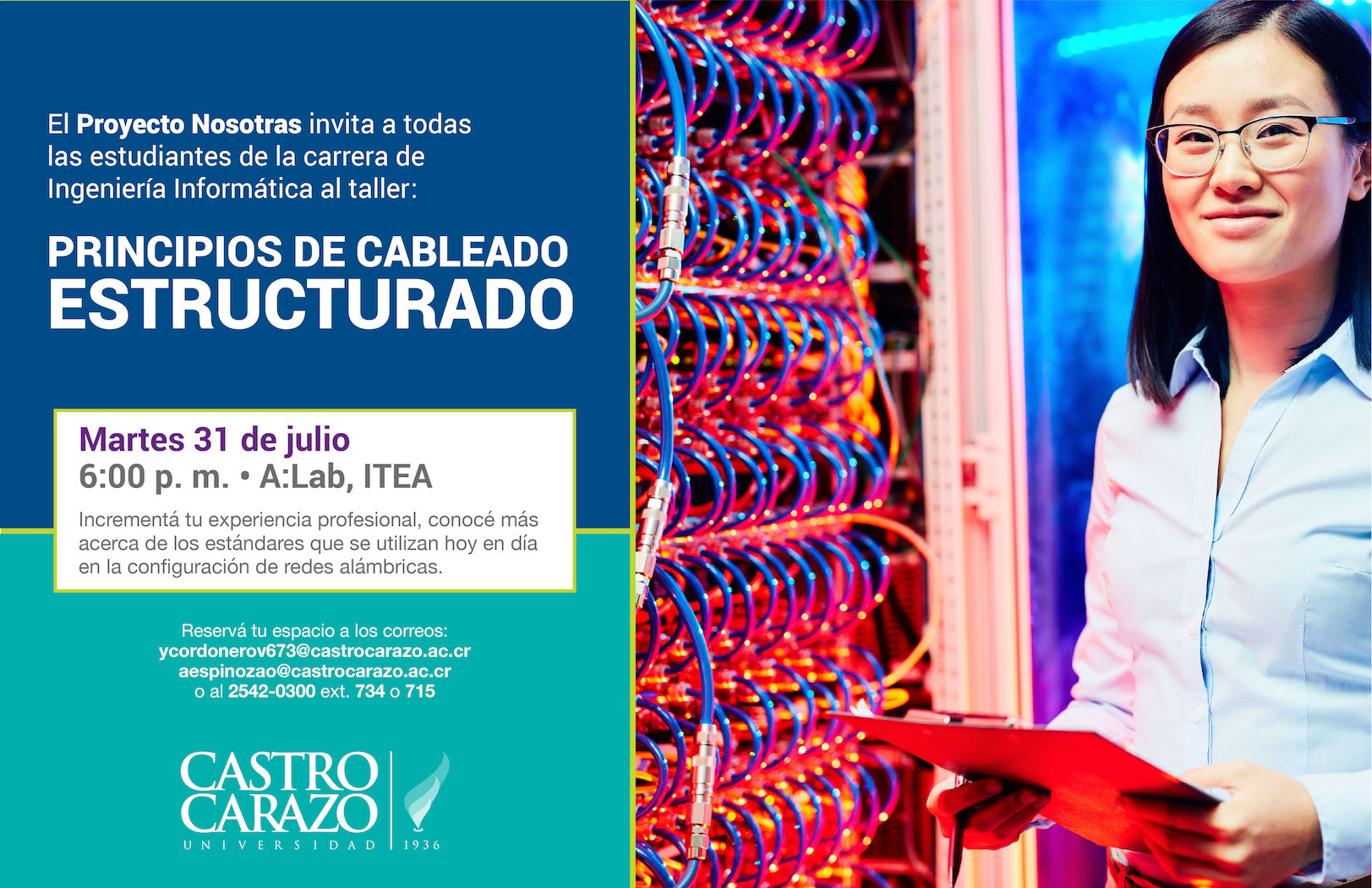 El Proyecto Nosotras invita a todas las estudiantes de la carrera de Ingeniería Informática al Taller: "Principios de Cableado Estructurado".