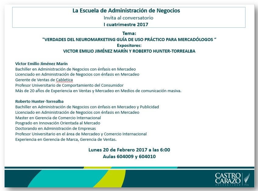 Conversatorio: Verdades del neuromarketing, guía de uso práctico para mercadología.